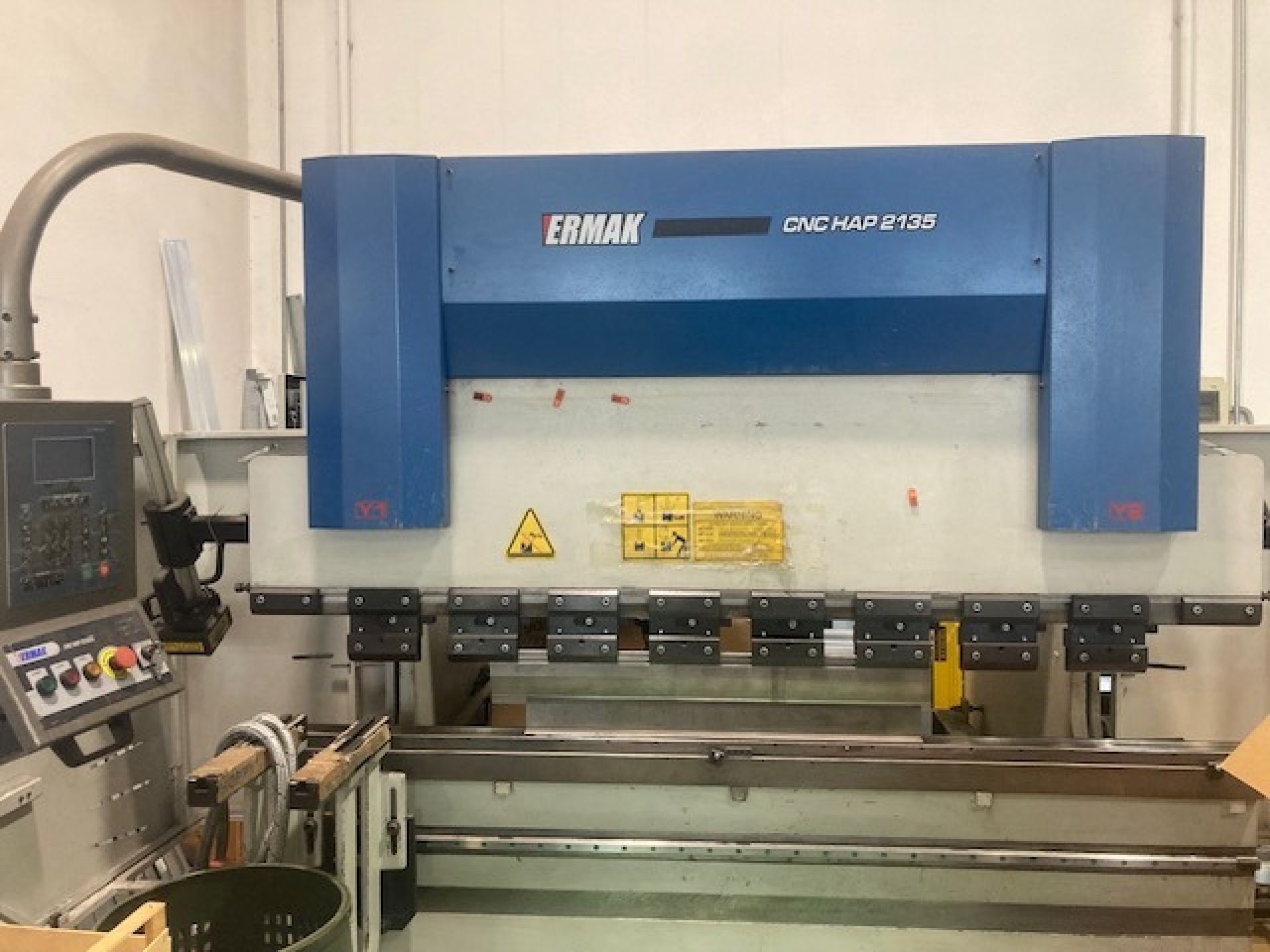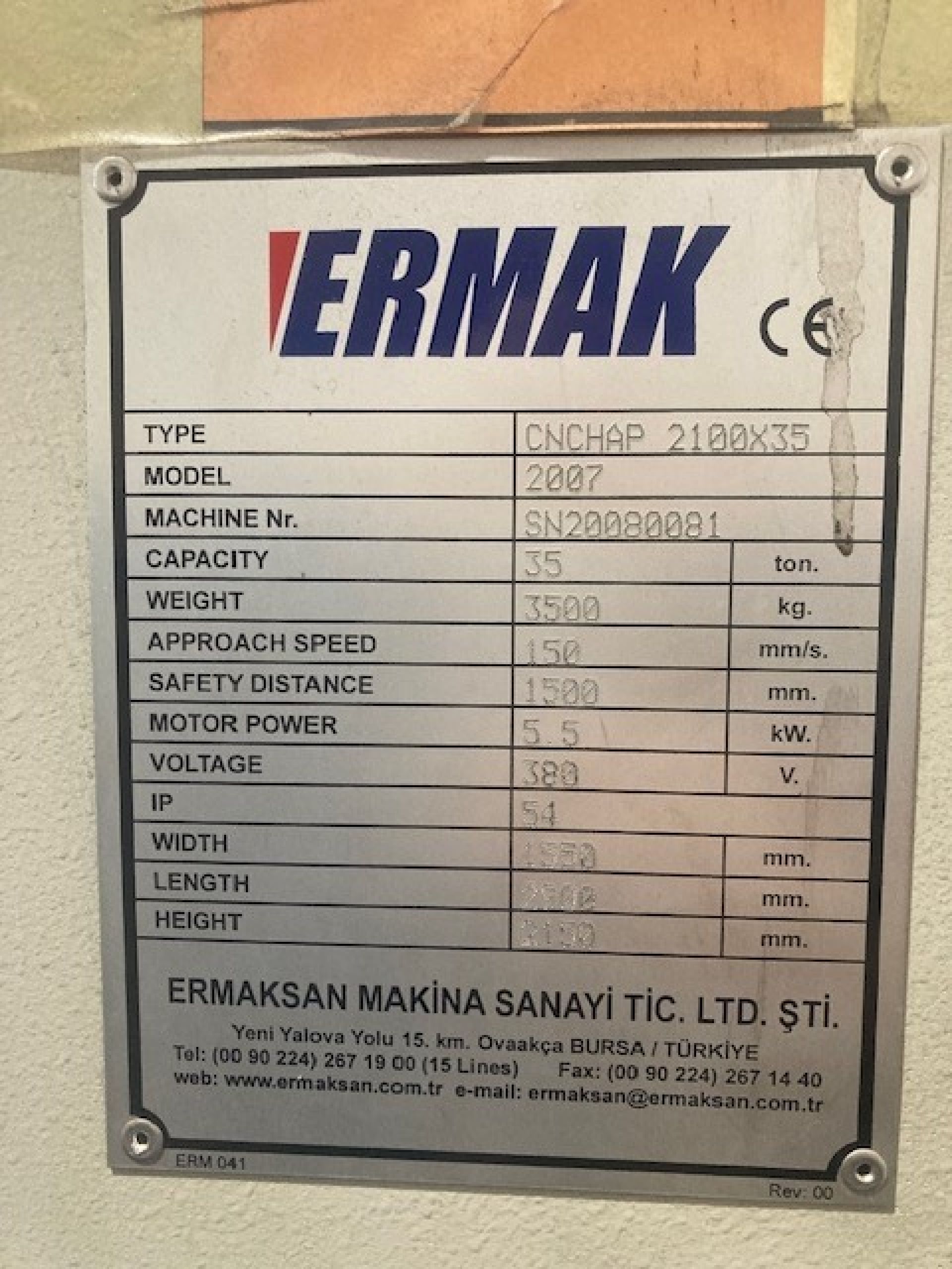 La ERMAKSAN SYNCRO 2100 x 35 (2007) è una pressa piegatrice CNC progettata per offrire precisione, affidabilità e performance costanti nel tempo. Con una capacità di 35 tonnellate e una lunghezza di piega di 2100 mm, rappresenta una soluzione estremamente versatile per officine meccaniche, carpenterie leggere e aziende che necessitano di incrementare la produttività senza sacrificare la qualità del risultato.
