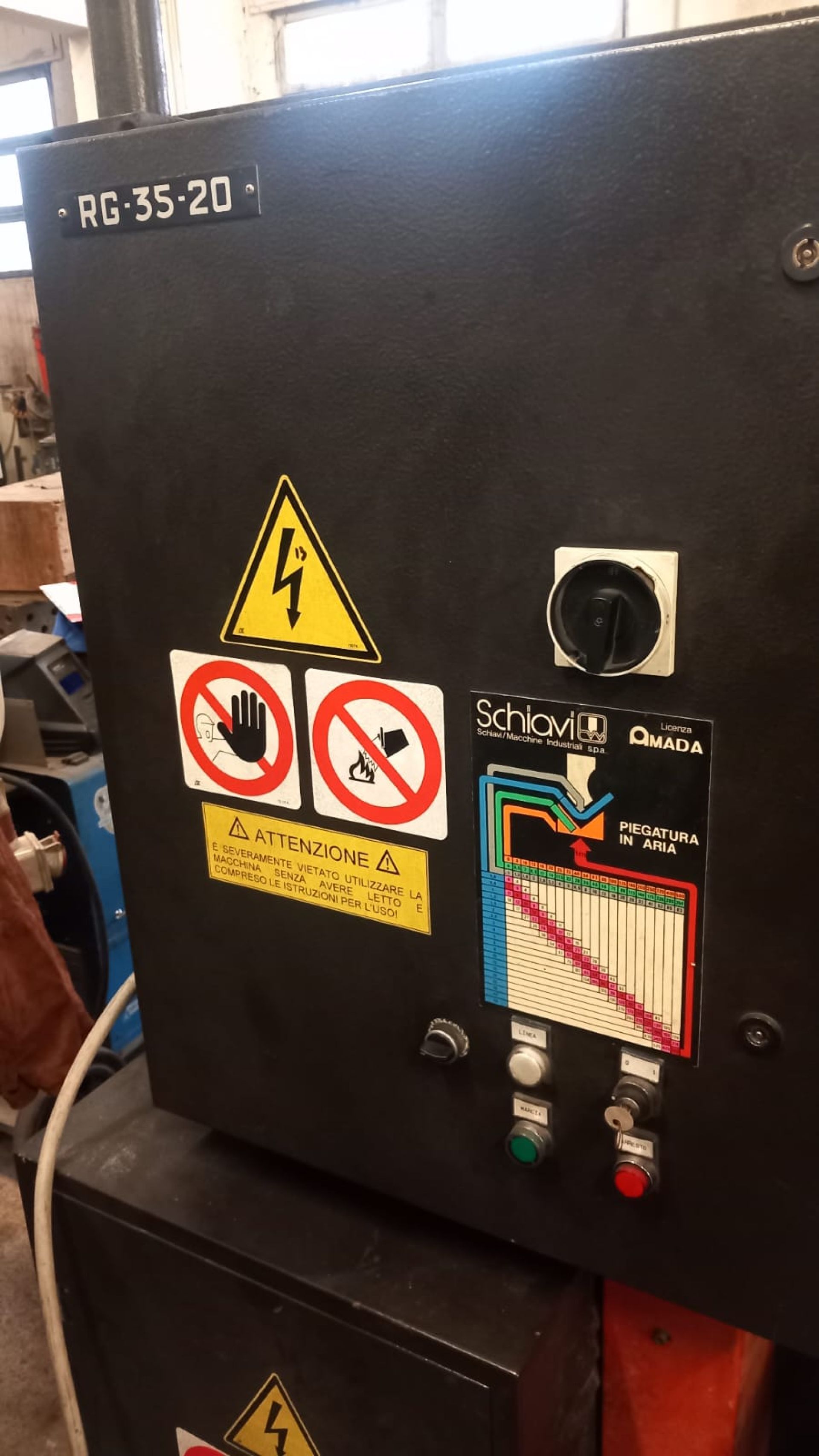 Pressa piegatrice Schiavi Amada RG 35-20 usata, anno 1996, macchina compatta e affidabile, ideale per carpenteria leggera e media e per lavorazioni di piegatura precise.
