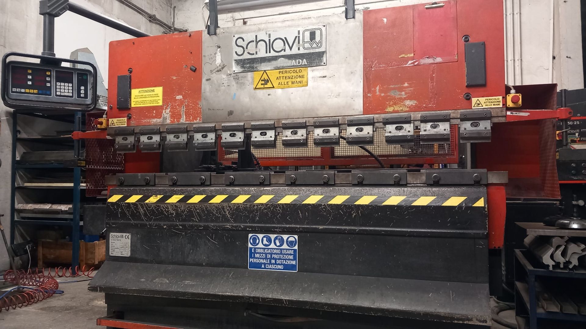 Pressa piegatrice Schiavi Amada RG 50/25 usata, anno 1996, macchina storica del marchio Schiavi-Amada, conosciuta per l’elevata robustezza strutturale e l’affidabilità nel tempo.